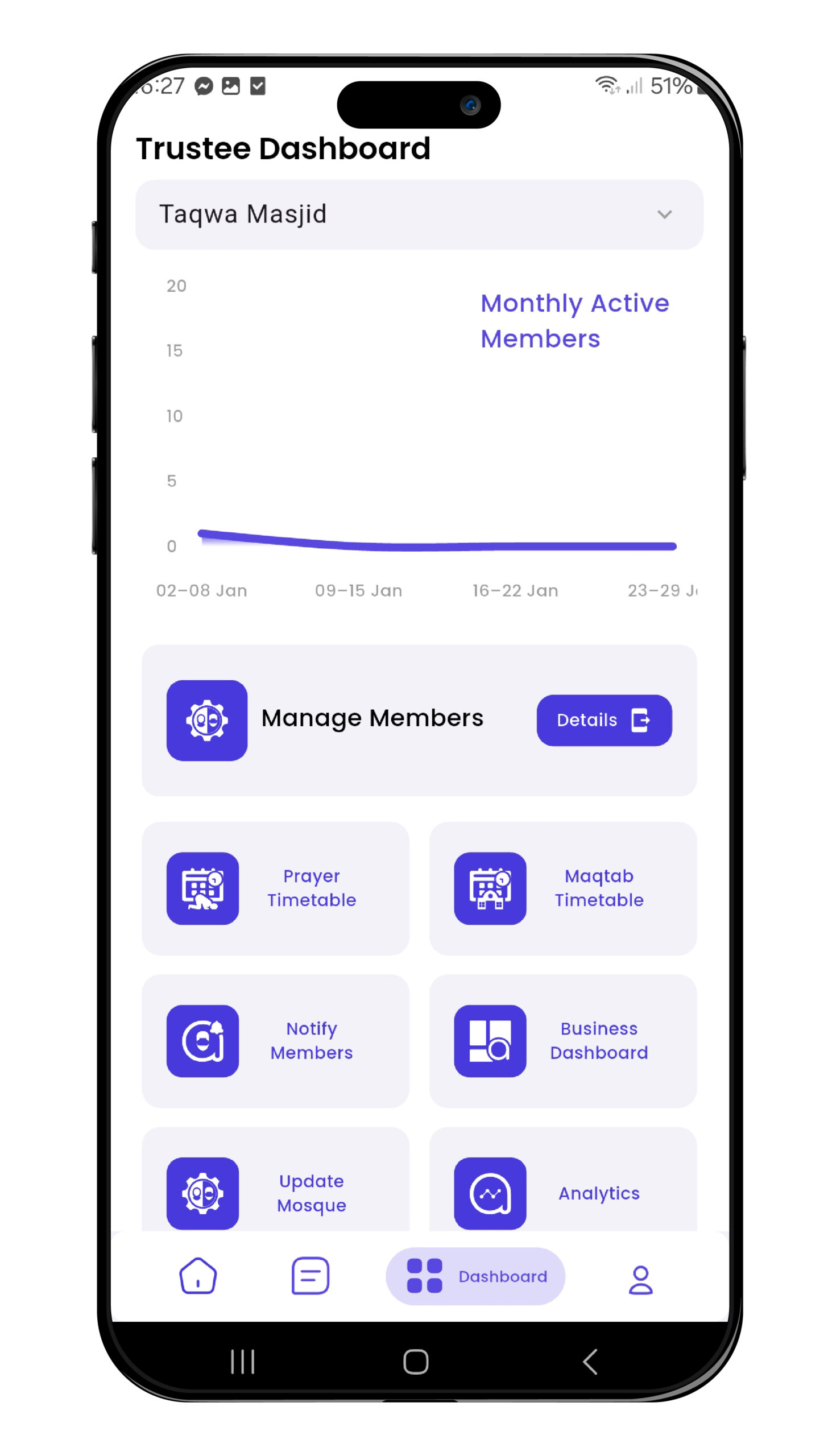 Manage your Masjid effortlessly with comprehensive tools designed for trustees and administrators.